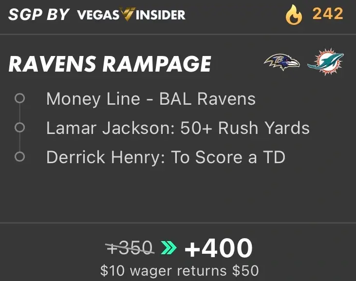 Ready for Thursday Night Football between the Ravens and Dolphins with an NFL Same Game Parlay that pays out +511? Follow along as NFL betting expert, Nick Galaida, breaks down his SGP picks for Thursday, October 30.