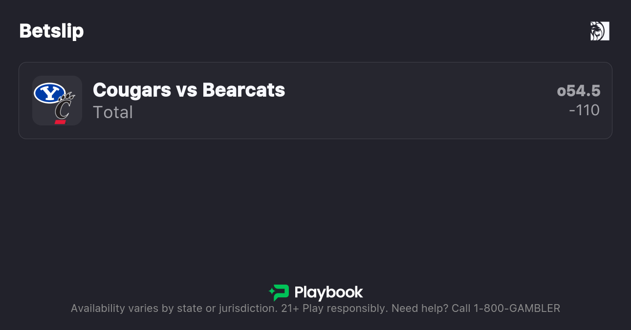 The BYU Cougars opened as a -2.5 point favorite over Cincinnati. The total is set at over/under 54.5 total points scored by both teams combined.
