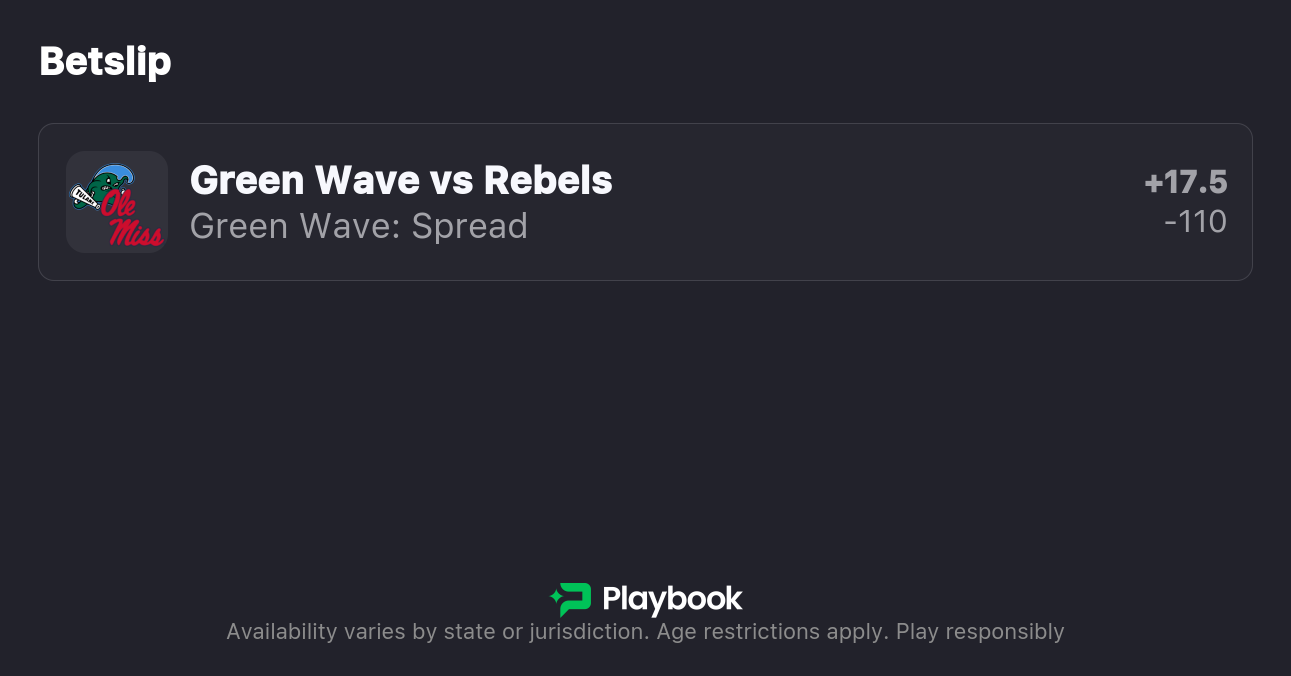 Tulane vs. Ole Miss Prediction: Tulane Green Wave +18.5 (-110)