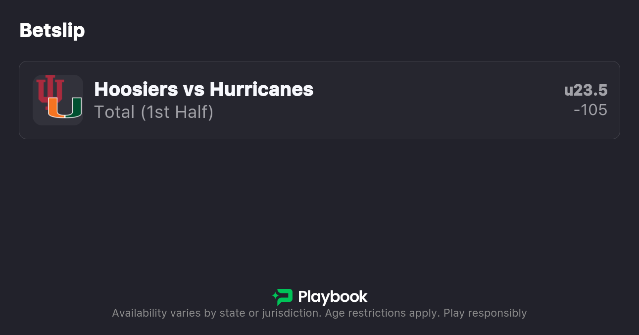 The best bet regarding the total is on the first-half under 23.5, backing two defenses that are top-five in points allowed, along with an often sluggish start for the Canes offense.