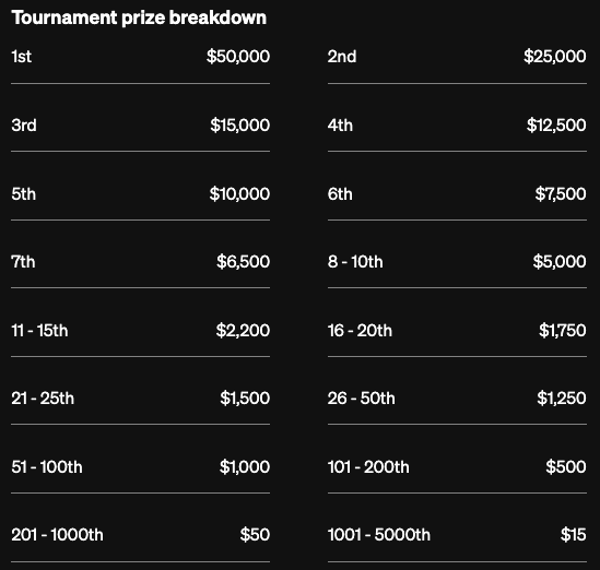 See the picture above for a complete breakdown of the prize pool for this contest.