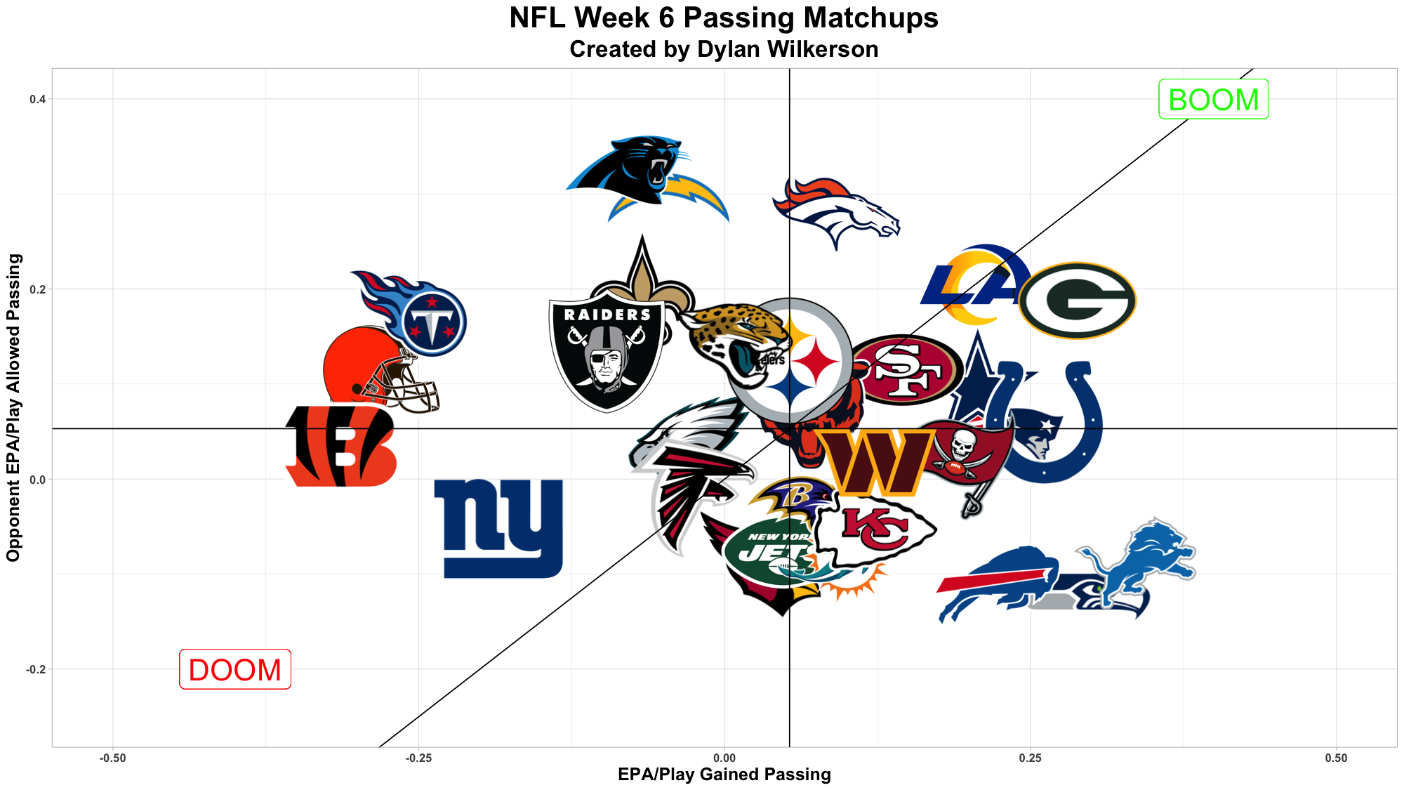 Last week we took a look at some key matchups for week 5 and we found some winners (Jones/Goff/Prescott/Croskey-Merritt) and some losers (Eteienne/Kamara) We will take a look at the best fantasy matchups and what players are worth drafting in fantasy lineups for this week or starting in your leagues. This is also a great way to target NFL player props.