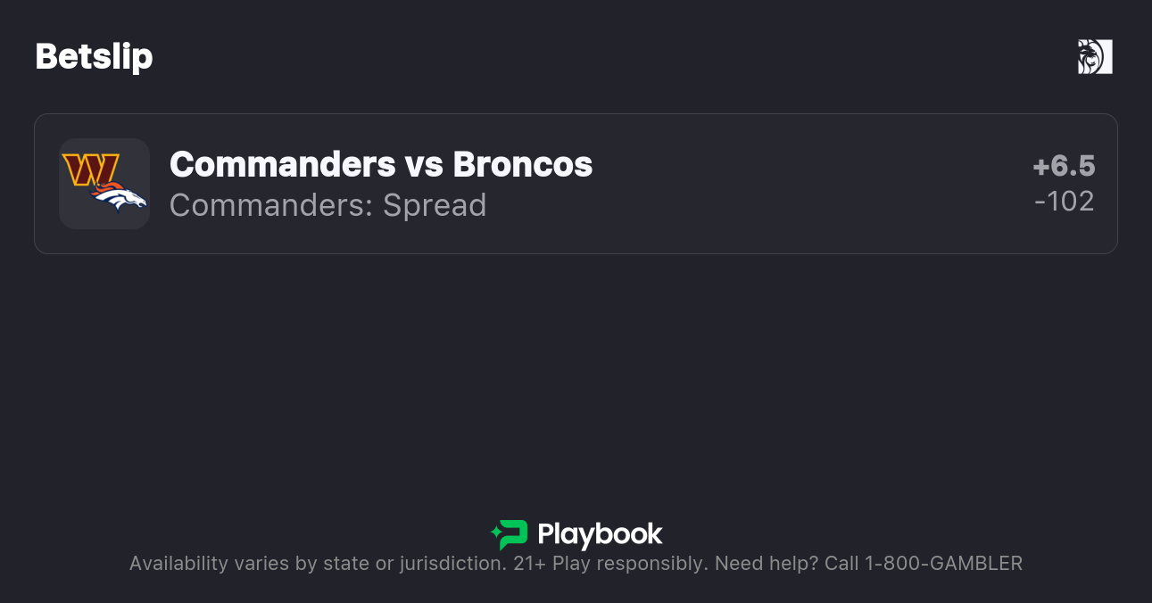 Denver Broncos vs. Washington Commanders Prediction: Washington Commanders +6.5 (-102)