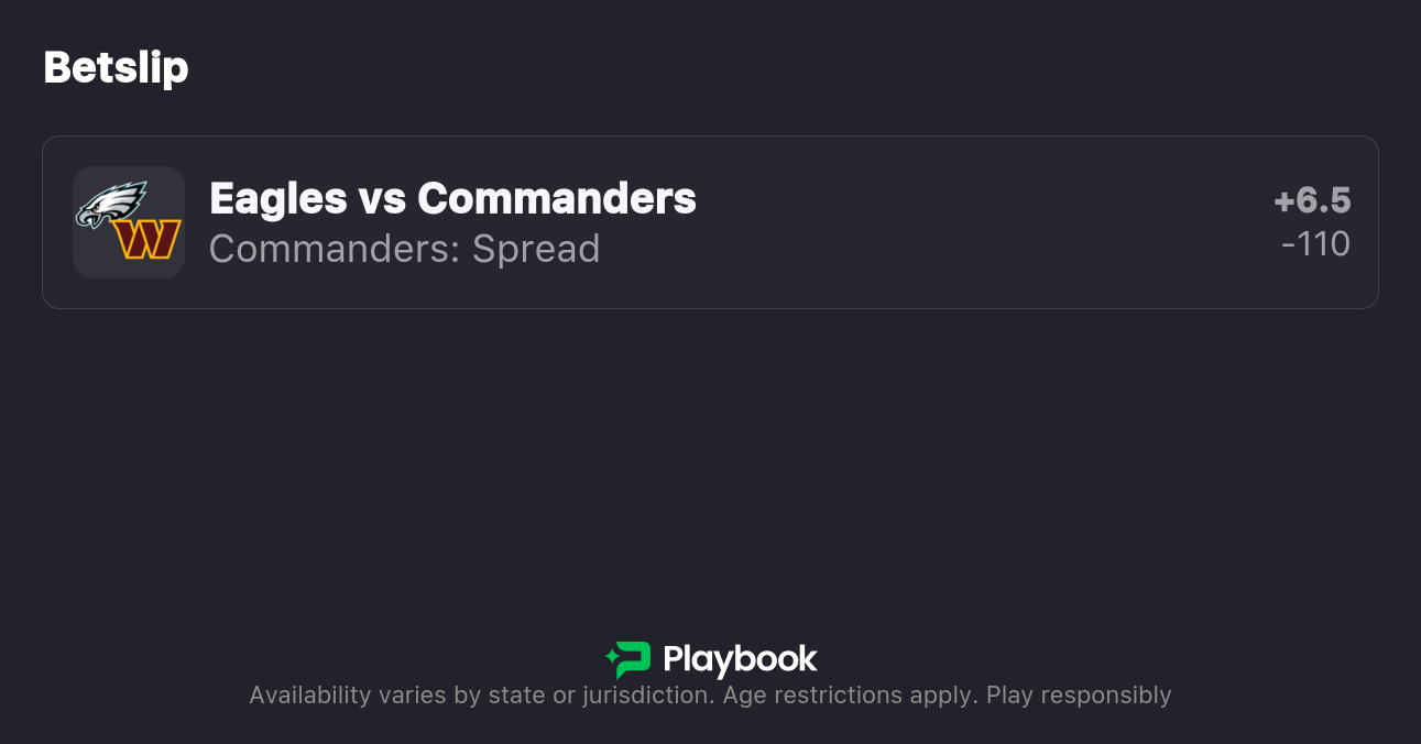 Philadelphia Eagles vs. Washington Commanders Prediction: Washington Commanders +6.5 (-110)