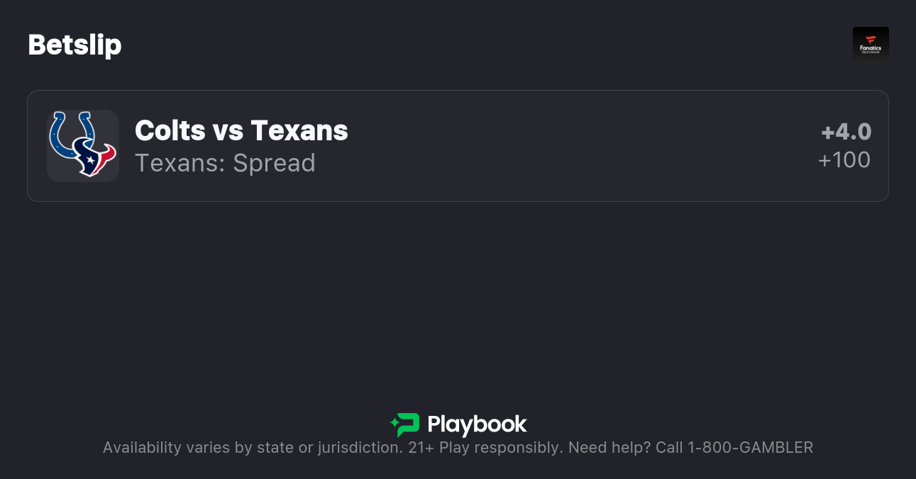 Houston Texans vs. Indianapolis Colts Prediction: Houston Texans +4.5 (-105)